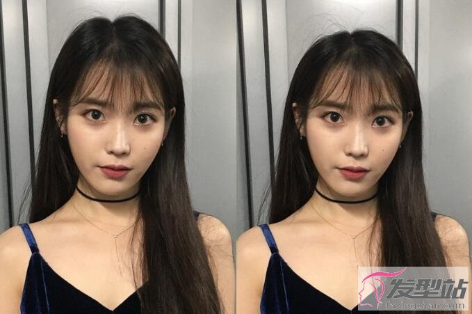 针对高额头的女孩,我们有两点做法可以视觉下移发际线。首先,剪个可爱的刘海吧!不论是Lisa的整齐娃娃刘海,还是IU的氧气刘海,都有很棒的修饰额头效果,还能让整个人看起来稚嫩许多。