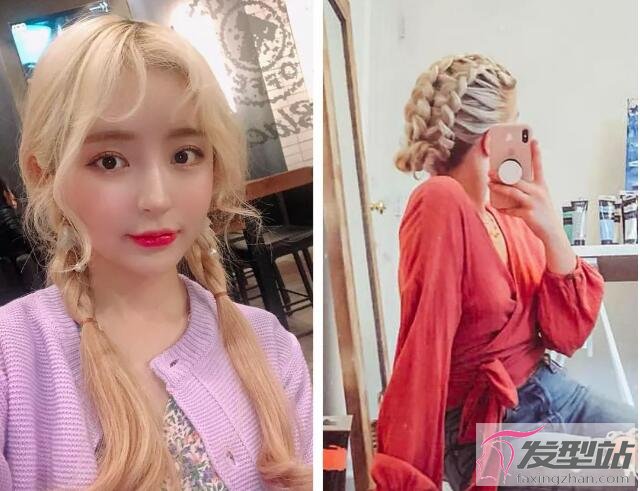 ③白金色头发做起编发来也很好看,现在最流行的麻花辫、拳击辫扎起来可盐可甜!