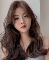 焦羽色,发色与微微卷曲的中长发搭配,发丝看起来更为柔软,发色将肤色映衬得更为白皙照人。