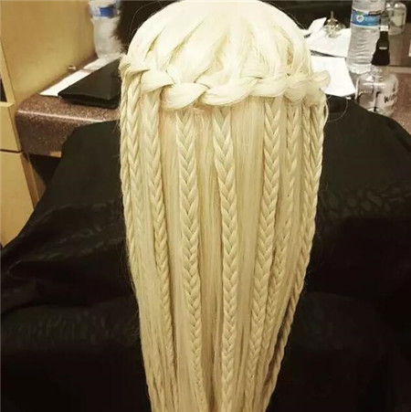 当编织好瀑布辫之后,垂顺的发型可以将它编织成小小的麻花辫,银白色的发辫,甜美优雅。